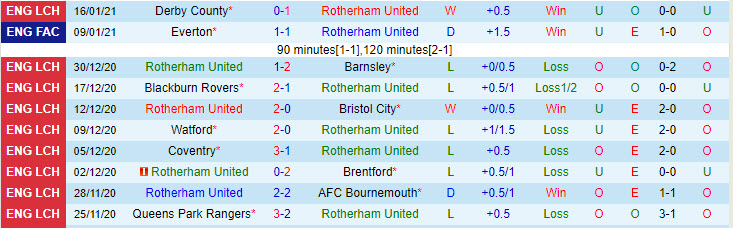 + Thống kê 10 trận gần nhất của Rotherham