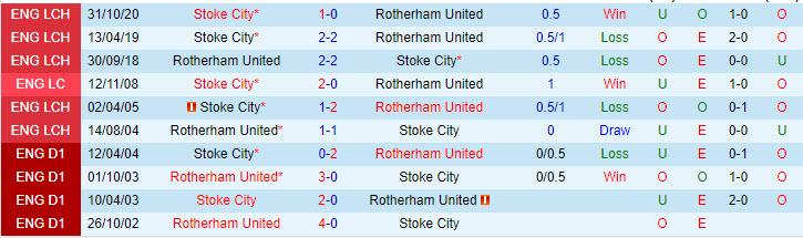 Phong độ và thống kê đối đầu Rotherham - Stoke gần đây: