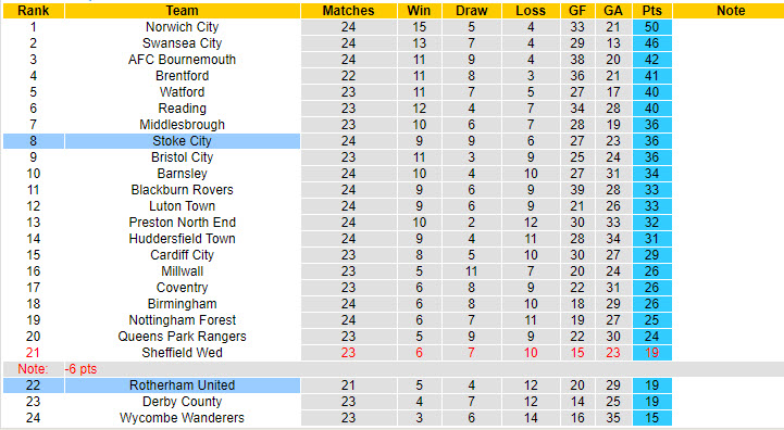 Nếu chỉ nhìn thoáng qua, Rotherham sẽ có 90 phút khó khăn khi đụng đội đội bóng xếp trên họ tới 14 bậc là Stoke. Nếu tính tới thời điểm hiện tại, Rotherham là đội bóng đứng trong nhóm cầm đèn đỏ - vị trí thứ 22/24 đội tham dự. Trong khi đó, Stoke là đội bóng đứng ở vị trí thứ 8 trên BXH.