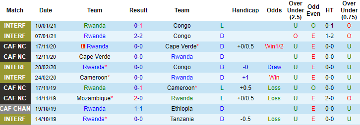 Lối chơi phòng ngự chủ động giúp Rwanda trở thành một đội bóng vô cùng khó bị đánh bại từ năm 2019. 6 trận gần đây tính trên mọi đấu trường, Rwanda bất bại 5 lần, trong đó có 4 trận khép lại với tỷ số hòa 0-0. Trận đối đầu gần nhất cũng thuộc khuôn khổ giải vô địch châu Phi, Rwanda đã xuất sắc đánh bại Uganda với tỷ số 2-0.