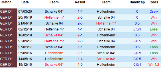 Tuy nhiên, giới chuyên gia lại hy vọng đây có thể là chiến thắng đầu tiên của Schalke ở mùa giải năm nay. Bởi phía đối diện chỉ là Hoffenheim không mấy vượt trội về chuyên môn và thậm chí còn sở hữu số trận thắng kèo cực kỳ nghèo nàn.