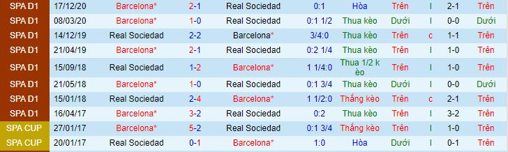 + Lịch sử đối đầu Sociedad vs Barcelona