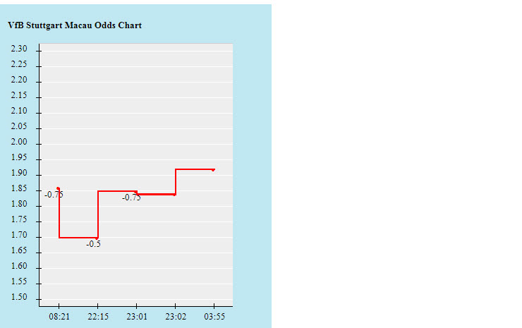 Các nhà cái uy tín châu Á đã có thời điểm hạ kèo chấp của trận đấu này xuống còn Stuttgart chấp hòa (-1/2). Tới thời điểm hiện tại, tỷ lệ cược đã được đẩy về mốc ban đầu đội chủ nhà chấp thắng một ăn nửa (-3/4).