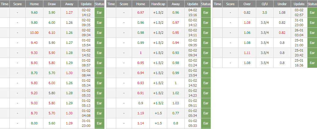 Chưa dừng lại, trong suốt thời gian niêm yết trên sàn giao dịch châu Á, giới cần cân nảy mực đã bất ngờ đầy kèo chấp của trận đấu này thêm 1/4 trái. Theo đó, họ tăng kèo chấp của Bayern Munich từ chấp một đứt (-1 1/2) lên thành chấp thắng hai ăn nửa (-1 3/4).