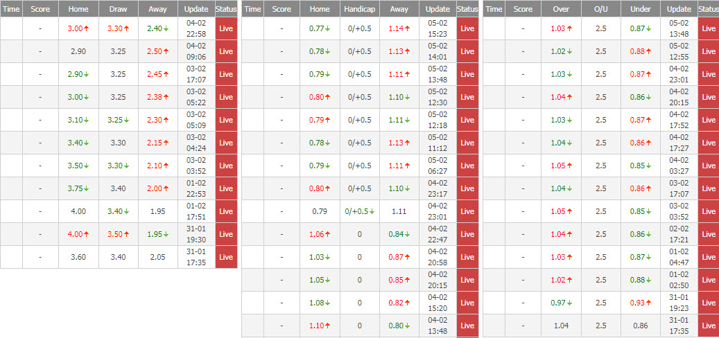 Tuy nhiên, tới sát thời điểm trận đấu bắt đầu, giới cầm cân nảy mực đã bất ngờ thay đổi tỷ lệ cược. Cụ thể, các nhà cái uy tin của châu Á đồng loạt tăng kèo chấp của trận đấu này từ tỷ lệ hòa được thua lên thành Newcastle chấp đồng banh (-1/4).