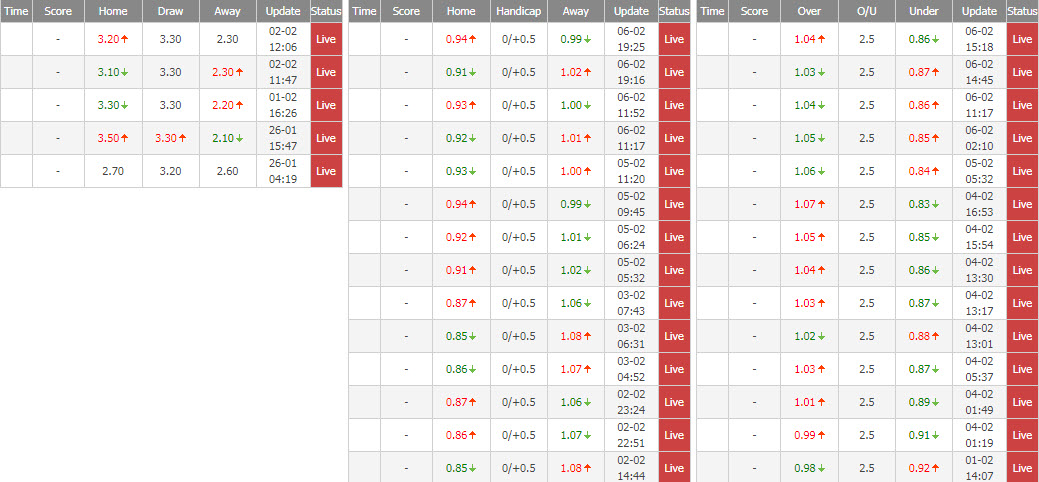 Tuy nhiên, tới thời điểm hiện tại, họ đã bất ngờ thay đổi tỷ lệ cược của trận đấu này. Cụ thể, giới cầm cân nảy mực tăng kèo chấp của đội khách Bologna từ kèo hòa được thua lên thành chấp đồng banh (-1/4).