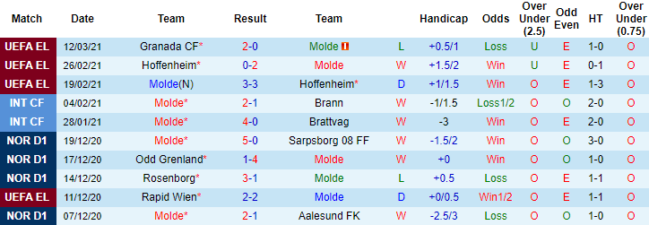 + Lịch sử đối đầu Molde vs Granada