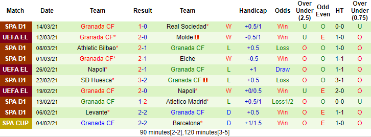 + Thống kê 10 trận gần nhất của Granada