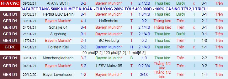 Bayern đã toàn thắng 6 trận gần nhất ở mọi sân chơi. Họ không để lọt lưới trong 3 trận gần nhất tại FIFA Club World Cup. Ngoài ra, Bayern cũng chỉ để lọt lưới 1 lần trong 5 trận gần đây ở mọi giải đấu. Các trận đấu của Bayern thường diễn ra với thế trận một chiều nên khả năng tổng bàn thắng về xỉu cũng cao hơn.