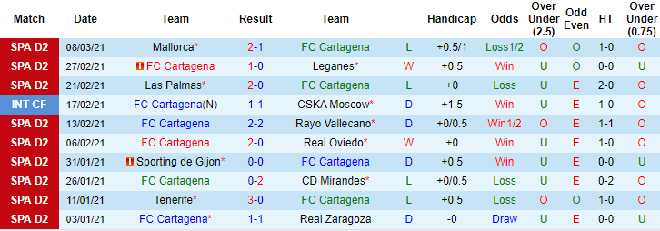 Thống kê cũng cho thấy, 6 trận liên tiếp gần đây của Cartagena tính trên mọi đấu trường đều khép lại mà không thể vượt mốc 8 quả phạt góc. Bên phía đối diện, 5 trên 6 trận vừa qua của Ponferradina cũng kết thúc mà không thể cán mốc 9 tình huống đá phạt cố định gần cột cờ.