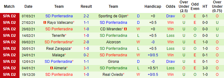 + Thống kê 10 trận gần nhất của Ponferradina