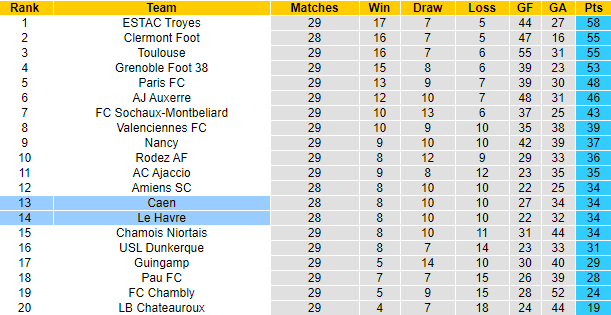 Dự đoán tỷ số Caen 0-0 Le Havre