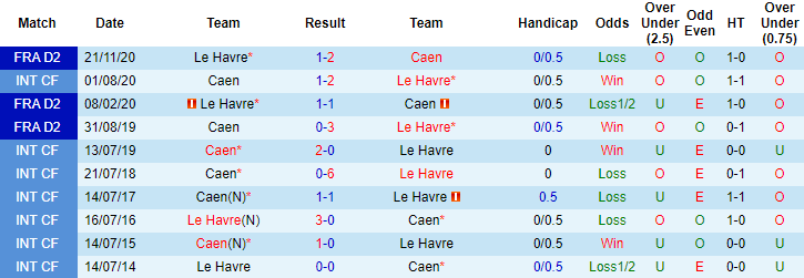 Thống kê cho thấy, cả 2 trận đối đầu gần đây giữa Caen vs Le Havre đều khép lại với kịch bản có 3 pha lập công. Trong vòng 6 lần chạm trán gần đây giữa hai đội, 4 trận kết thúc với nhiều hơn 2,5 bàn thắng. Thế nhưng trên sàn giao dịch châu Á, kèo Tài Xỉu trận đấu sắp tới chỉ dừng lại ở mức 2 hòa.