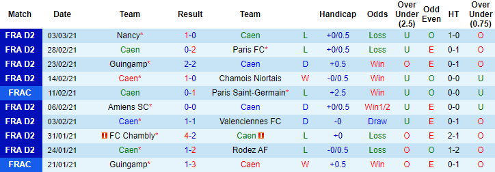 + Thống kê 10 trận gần nhất của Caen