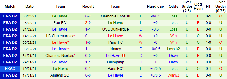 + Thống kê 10 trận gần nhất của Le Havre