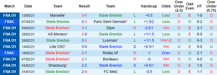 Giai đoạn gần đây Brest không có được phong độ tốt, nếu không muốn nói là rất tệ. 6 lần xuất quân vừa qua họ chỉ thắng được 1 trận, còn lại là 4 thất bại và 1 trận hòa. Dẫu vậy, điều đáng bàn là ở cuộc đua phạt góc, Brest vẫn thường xuyên mang về niềm vui cho người hâm mộ.