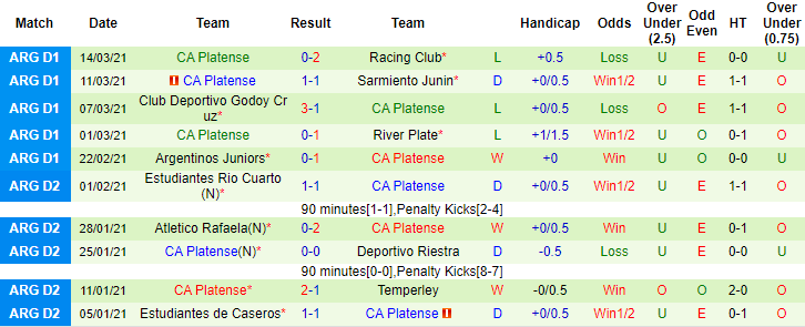 + Thống kê 10 trận gần nhất của Platense