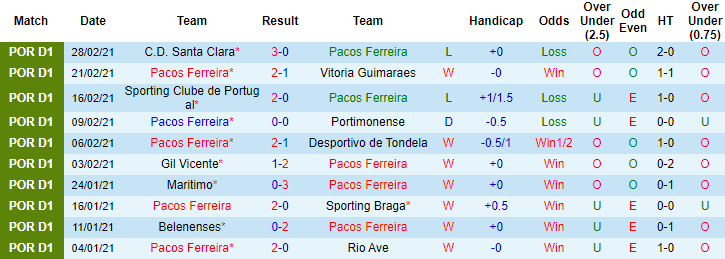 + Thống kê 10 trận gần nhất của Pacos Ferreira