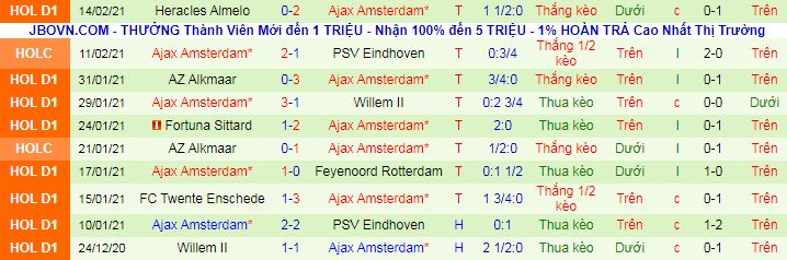 Bên kia sân, 3/5 trận gần nhất của Ajax cũng có kịch bản tương tự Lille, nghĩa là đều về Xỉu phạt góc. Trong quá khứ, cả 2 lần đối đầu của hai đội bóng này đều kết thúc với kết quả về Xỉu phạt góc. Đó là những thông số bào hiệu một trận đấu sẽ khan hiếm những tính huống đá phạt từ góc sân của hai đội ngày hôm nay.