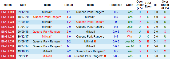 Những trận đối đầu QPR vs Millwall trước đây thường diễn ra với kịch bản chặt chẽ và kết thúc không có nhiều bàn thắng được ghi. Thống kê cho thấy, trong vòng 15 lần chạm trán giữa hai đội giai đoạn 2004-2020, có tới 11 trận khép lại với chỉ tối đa 2 pha lập công.