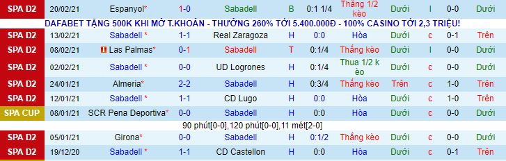 + Thống kê 10 trận gần nhất của Sabadell