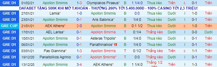 Tuy vậy, nếu để ý kỹ những trận thua của Apollon Smyrni thì họ lại thường không để thủng lưới quá nhiều. Chẳng nói đâu xa, trong 7 trận thua gần nhất của đội bóng này thì có tới 5 lần họ gục ngã với cách biệt 0-1 trước các đối thủ. Hệ quả là 7/9 trận gần đây của Apollon Smyrni chỉ có tối đa 2 bàn/trận.