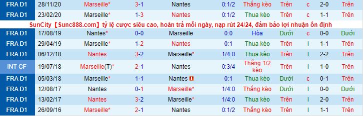 + Lịch sử đối đầu Nantes vs Marseille