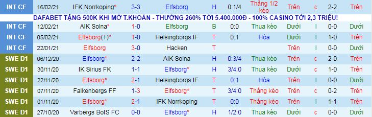 + Thống kê 10 trận gần nhất của Elfsborg