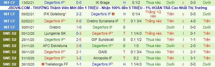 Bên kia sân, Degerfors cũng là đội có tỷ lệ bàn thắng trung bình mỗi trận rất cao. Theo thống kê, đã có tổng cộng 33 bàn thắng được ghi trong 10 trận gần nhất có sự góp mặt của Degerfors, TB 3,3 bàn/trận.