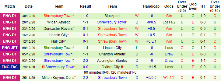 + Thống kê 10 trận gần nhất của Shrewsbury