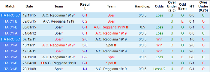 Phong độ và thành tích đối đầu SPAL 1907 - Reggianna gần đây