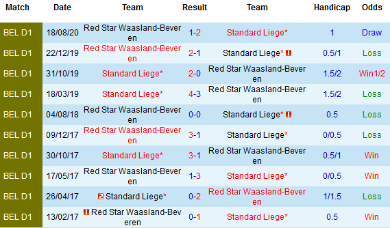 + Lịch sử đối đầu Standard Liege vs Waasland-Beveren