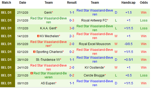 + Thống kê 10 trận gần nhất của Waasland-Beveren