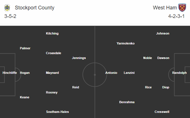 Đội hình dự kiến Stockport vs West Ham