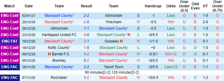 + Thống kê 10 trận gần nhất của Stockport