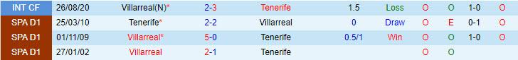 Phong độ và thống kê đối đầu Tenerife - Villarreal gần đây: