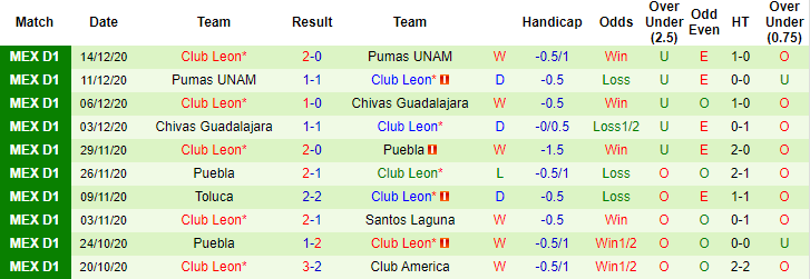 Trong khi đó Club Leon vẫn thường xuyên gây thất vọng ở các chuyến làm khách. 4 trận xa nhà vừa qua Club Leon thua 1, hòa 3 và toàn thua theo kèo châu Á. Tuy nhiên ở trận đấu sắp tới, Club Leon vẫn được tin tưởng vào khả năng mang về niềm vui cho người hâm mộ nhờ thành tích nổi bật đã thể hiện ở giai đoạn 1.