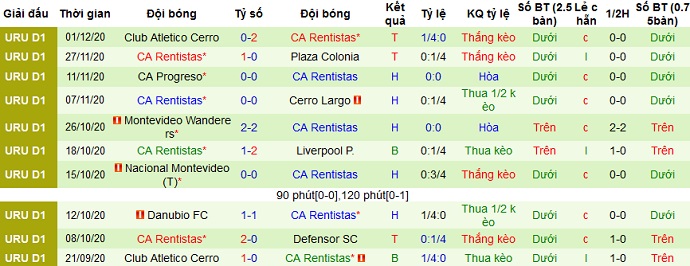 + Thống kê 10 trận gần nhất của Rentistas