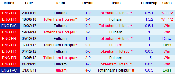 + Lịch sử đối đầu Tottenham vs Fulham