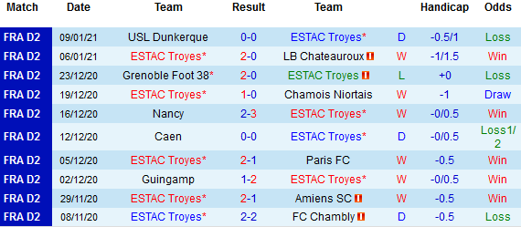 + Thống kê 10 trận gần nhất của Troyes