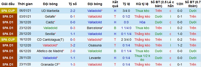 + Thống kê 10 trận gần nhất của Valladolid