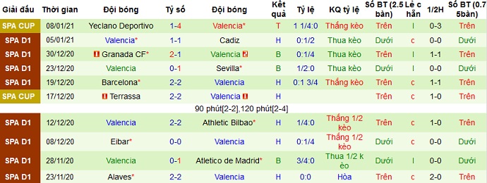 + Thống kê 10 trận gần nhất của Valencia