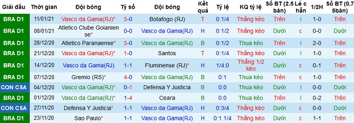 Trong 5 vòng đấu gần nhất Vasco da Gama cũng có được 2 trận thắng, 2 trận hòa và để thua 1 trận. Trên sân nhà thành tích của đội bóng cũng đang dần được cải thiện đáng kể, sau 2 trận thua liên tiếp Vasco da Gama cũng có được 1 trận hòa và 2 trận thắng ở các trận gần nhất tại đây.
