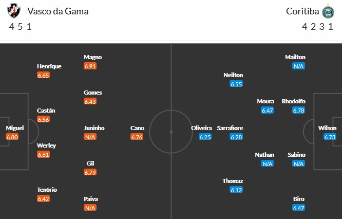 Đội hình dự kiến Vasco da Gama vs Coritiba: