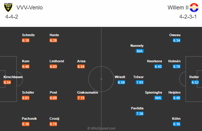 Đội hình dự kiến Venlo vs Willem II