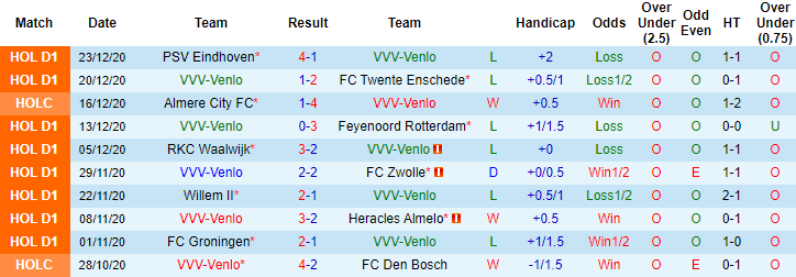 Sân nhà De Koel của Venlo vẫn được coi là cái dớp với Willem II. Trong vòng 7 lần tiếp đón Willem II trong quá khứ, Venlo đạt thành tích bất bại với 4 chiến thắng và 3 trận hòa. Dẫu vậy ở lần tái đấu sắp tới, Venlo đang đứng trước nguy cơ phải tay trắng rời cuộc chơi. 4 trận gần đây tại giải VĐQG Hà Lan, Venlo toàn thua cả về tỷ số và kèo châu Á.