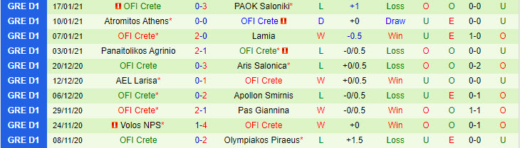 + Thống kê 10 trận gần nhất của OFI Creta