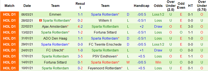 - Thống kê 10 trận gần nhất của Sparta Rotterdam