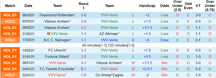 5/6 trận sân khách vừa qua thuộc khuôn khổ giải VĐQG Hà Lan của VVV Venlo không chứng kiến quá 2 bàn thắng. Kịch bản tương tự hứa hẹn tái diễn vào rạng sáng thứ Tư (10/3) theo giờ Việt Nam.