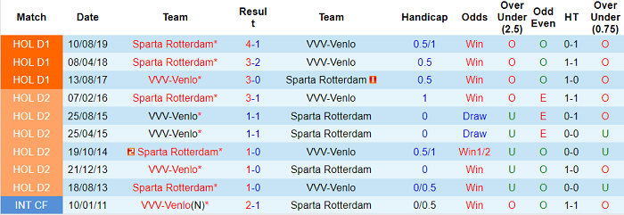 Phong độ và thống kê đối đầu VVV Venlo - Sparta Rotterdam